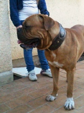 | Un jeune Dogue de Bordeau portant le collier réf: 0152 |